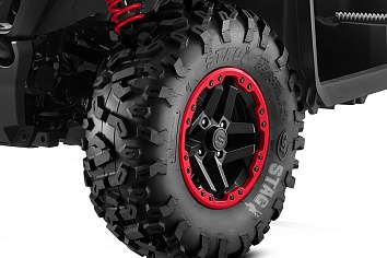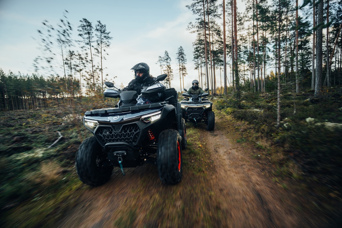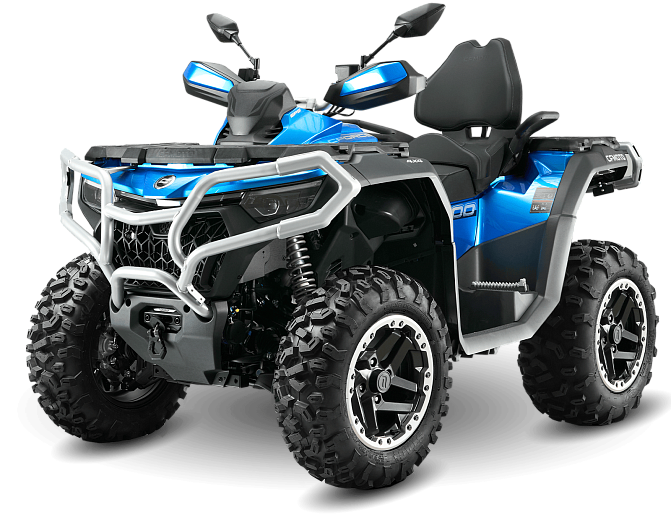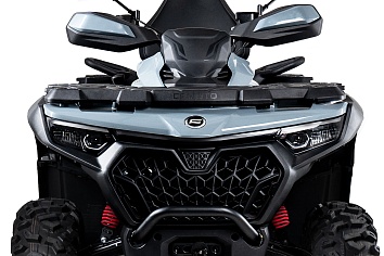 Неизменно мощный и надежный, этот квадроцикл обладает всеми ключевыми характеристики CFORCE 800 HO NEW. Однако эта версия оснащена 27-дюймовыми шинами STAG, установленными уже на 14” диски с бедлоками, что обеспечивает уверенную езду по любой поверхности на высоких скоростях, с возможностью быстрого изменения давления в колесе до минимального значения, не опасаясь «разбортировки» и тем самым повышая проходимость на серьезном бездорожье.